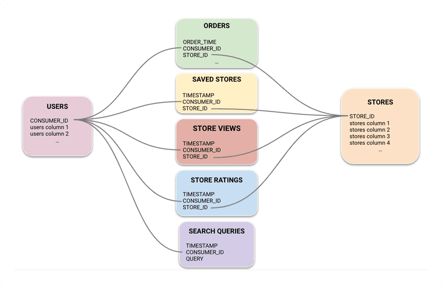 In addition to those minimal datasets, the client also shared various datasets that could represent user interests, intents, and preferences – such as store views, ratings, search queries, and saved stores. In overall, there were 20B+ records of data.