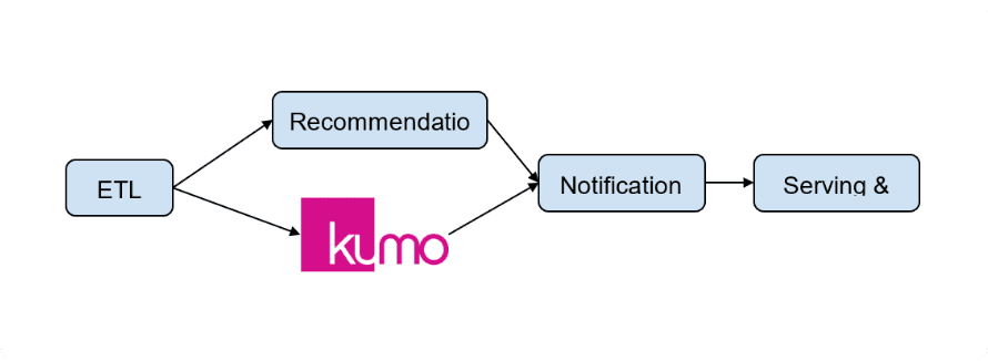 For A/B testing, in addition to the internal existing recommendation module, our client added a job for a batch prediction REST API call to Kumo, all from within the existing ML serving pipeline. When they would not need the internal recommendation module any more, they could easily remove the unnecessary job later.