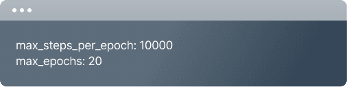 To allow longer training, the client added the following Advanced Option parameters to increase the number of steps per epoch as well as the max epoch size: