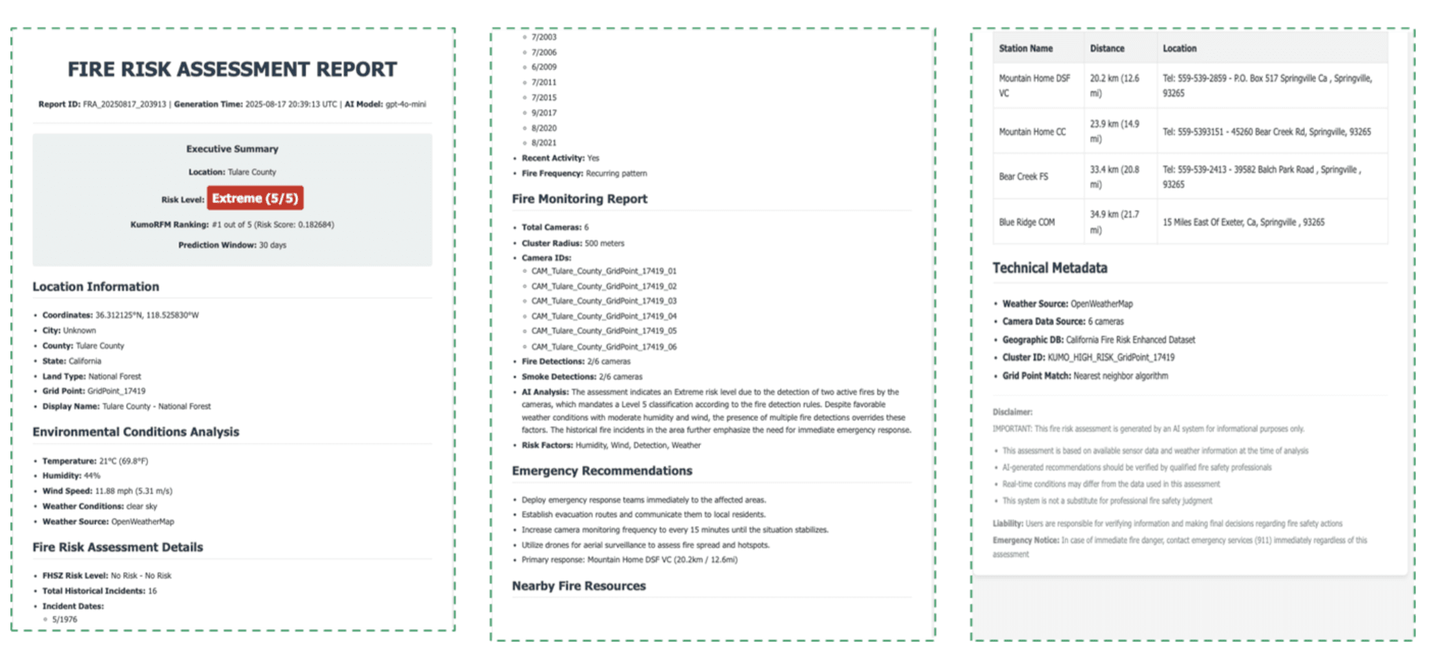 - Automated Report Generation: The system automatically generates a professional Fire Risk Assessment Report in both HTML and JSON formats. As seen in our case studies, this report includes: