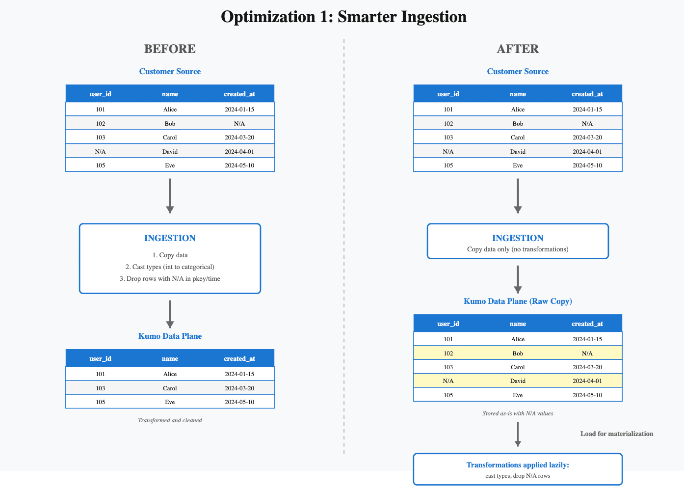 Before we dive into the optimizations, let's clarify two fundamental operations in Kumo: ingestion and graph materialization.