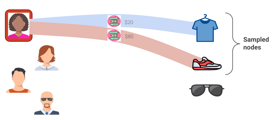 (2) For items not sampled in the subgraph, the Hybrid GNN computes the item scores by taking an inner product between GNN’s user embeddings with shallow item embeddings. As the low-dimensional item embeddings can capture similarity between items (à la matrix factorization), GNNs can use this method to recommend similar items that a user has never interacted with before.