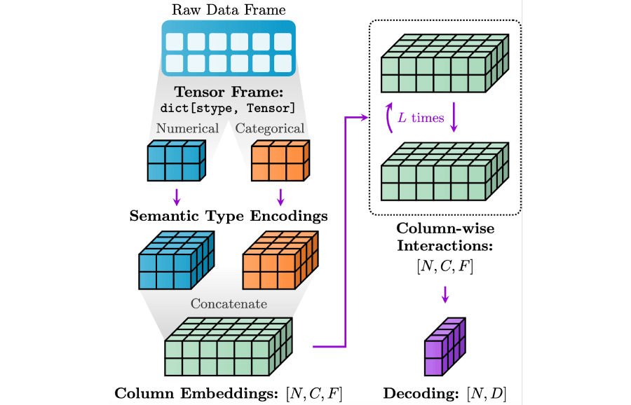 - Modality-Specific Embeddings: Each column is first embedded according to its data type: